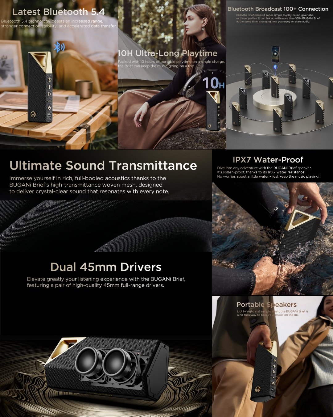Experience powerful sound and elegant design with the Bugani Brief Black & Gold Bluetooth Speaker. This sleek and stylish speaker delivers crisp, clear audio with deep bass, making it perfect for music lovers and audiophiles alike.