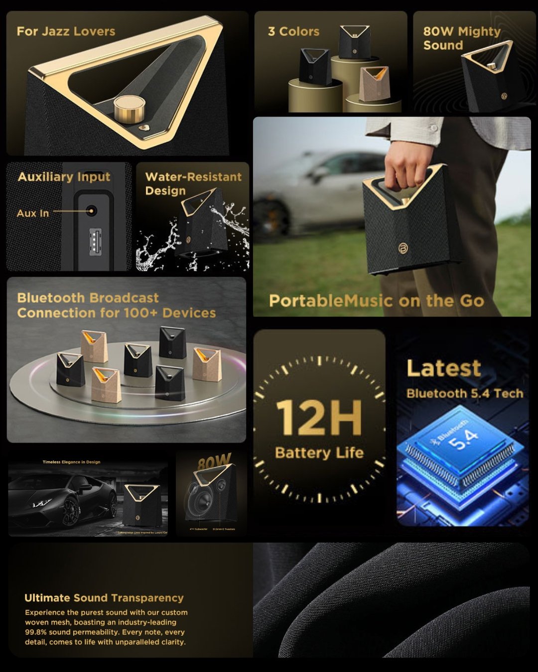 With its sleek black and gold color scheme, the Bugani Brief Plus Bluetooth Speaker not only sounds great but also looks great. The durable construction ensures that this speaker will stand up to daily use and the rigors of travel.