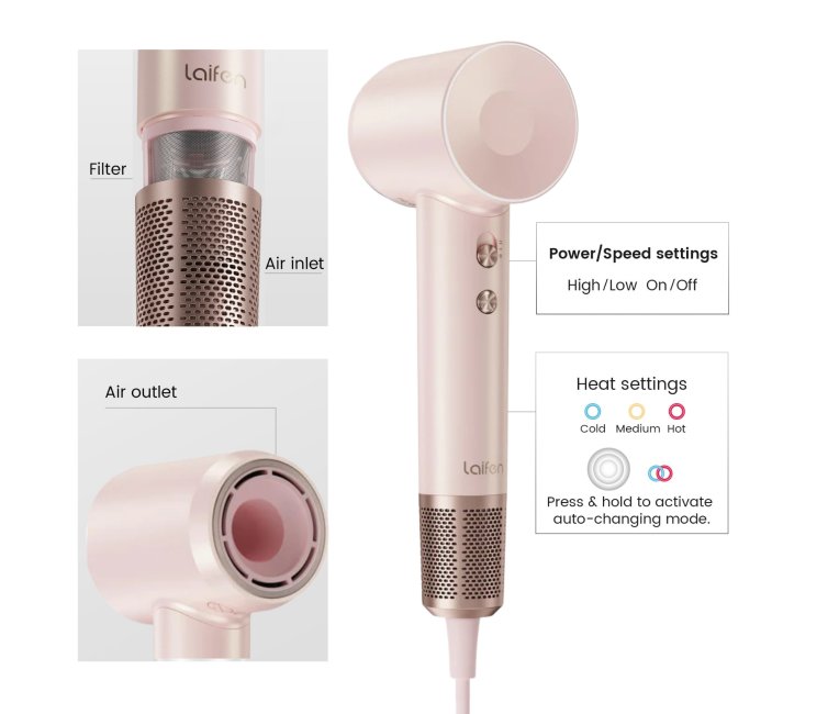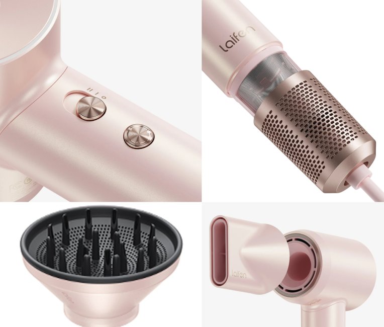 Laifen Swift Premium - High Speed Hairdryer with Attachments & Carry Case (Pink/Gold)